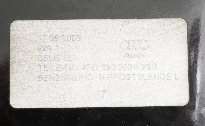 LH Exterior B Pillar Trim Between Doors / Windows 05-11 Audi A6 S6 4F0 853 289 A