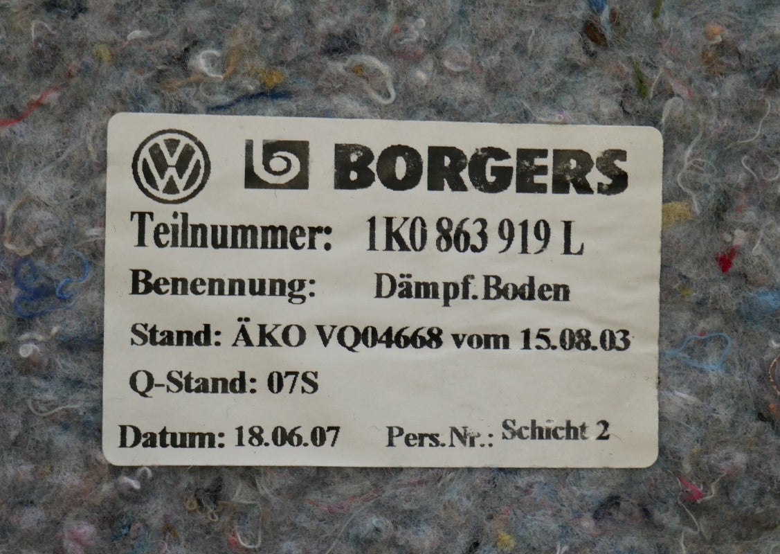 Carpet Insulation Liner Sound Deadening 05-10 VW Jetta Rabbit GTI Sportwagen Mk5