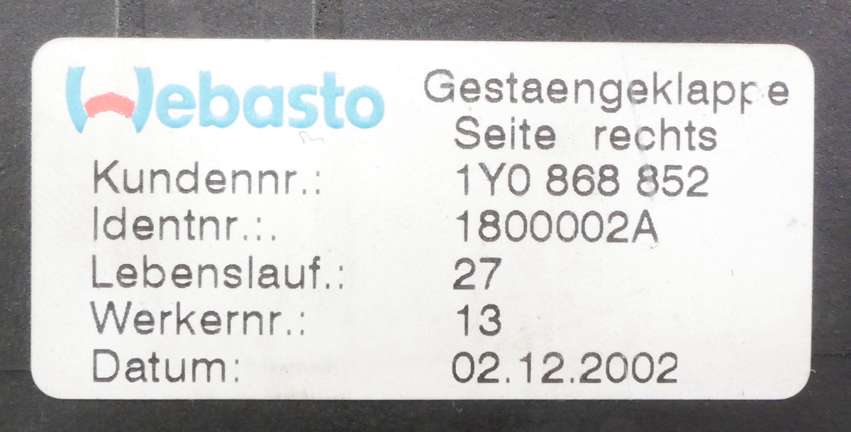 RH Rear Convertible Top Latch Flap 03-10 VW Beetle - Genuine - 1Y0 868 852